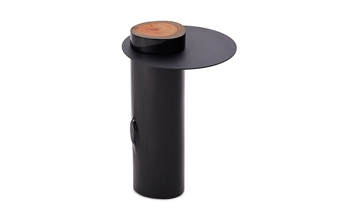 C401 marca o instante do artifício, quando a natureza se torna objeto. O disco de aço fissura o tronco de eucalipto, que pode exibir ou ocultar seus anéis de crescimento, reforçando a tensão de sua origem e ampliando o dilema do design como agente de mudança.