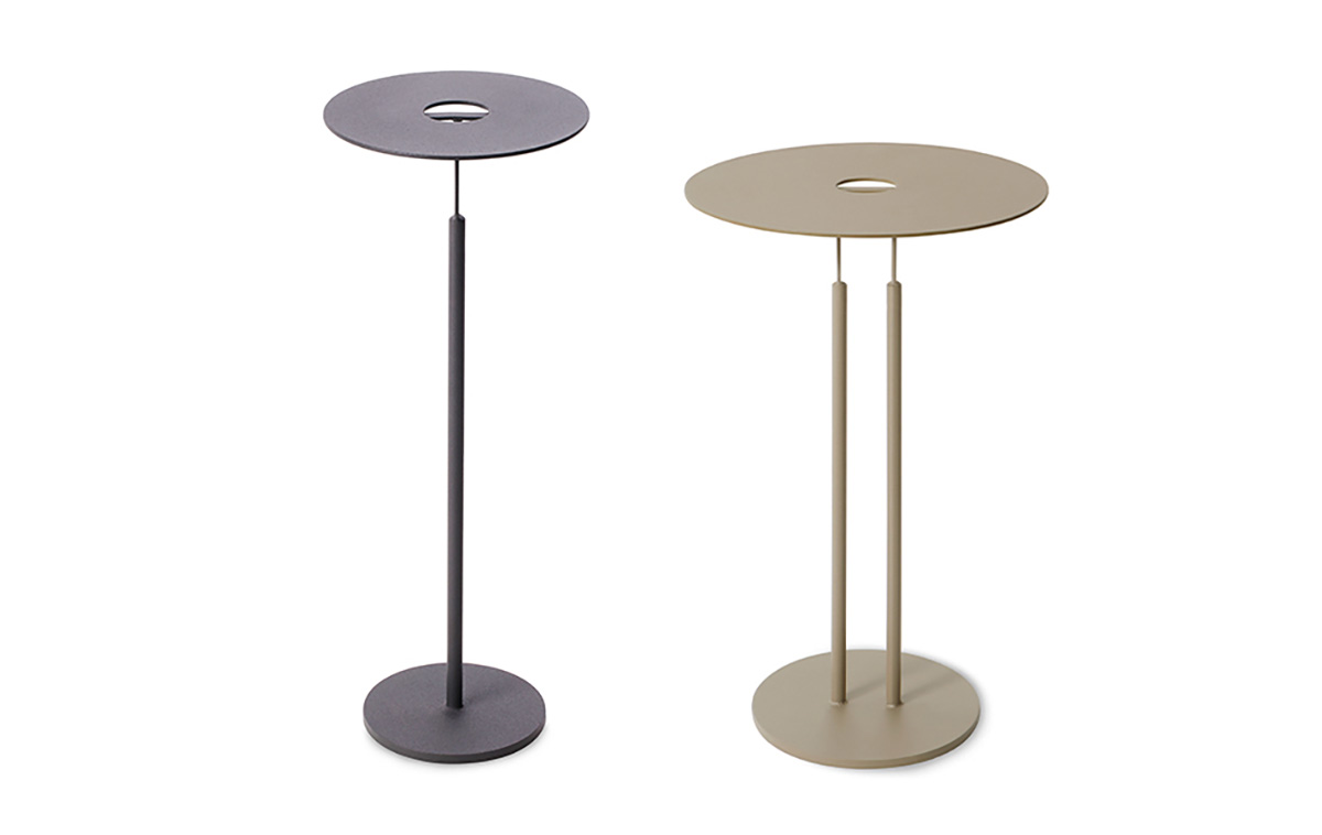 As mesas partem da composição elementar das formas para criar apoio leve e funcional. A abertura circular funciona como alça e gesto gráfico. Com desenho limpo e discreto, transitam com naturalidade por diferentes espaços.