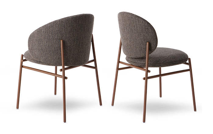 Com estrutura metálica e volumes estofados, a C605 é leve no olhar e firme no apoio. Vai da mesa de jantar ao trabalho, oferecendo conforto e estabilidade com sutileza visual. Seu desenho limpo e preciso revela uma cadeira que se encaixa fácil em diferentes estilos e funções.