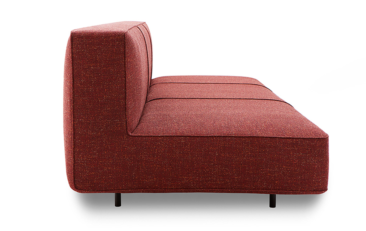 Desenho contínuo, proporções exatas e pés que somem sob o volume. A ausência de braços amplia a circulação e o uso, enquanto as marcações nos assentos organizam sem interferir na fluidez. Visual leve, linguagem pragmática e espaço para composições livres.