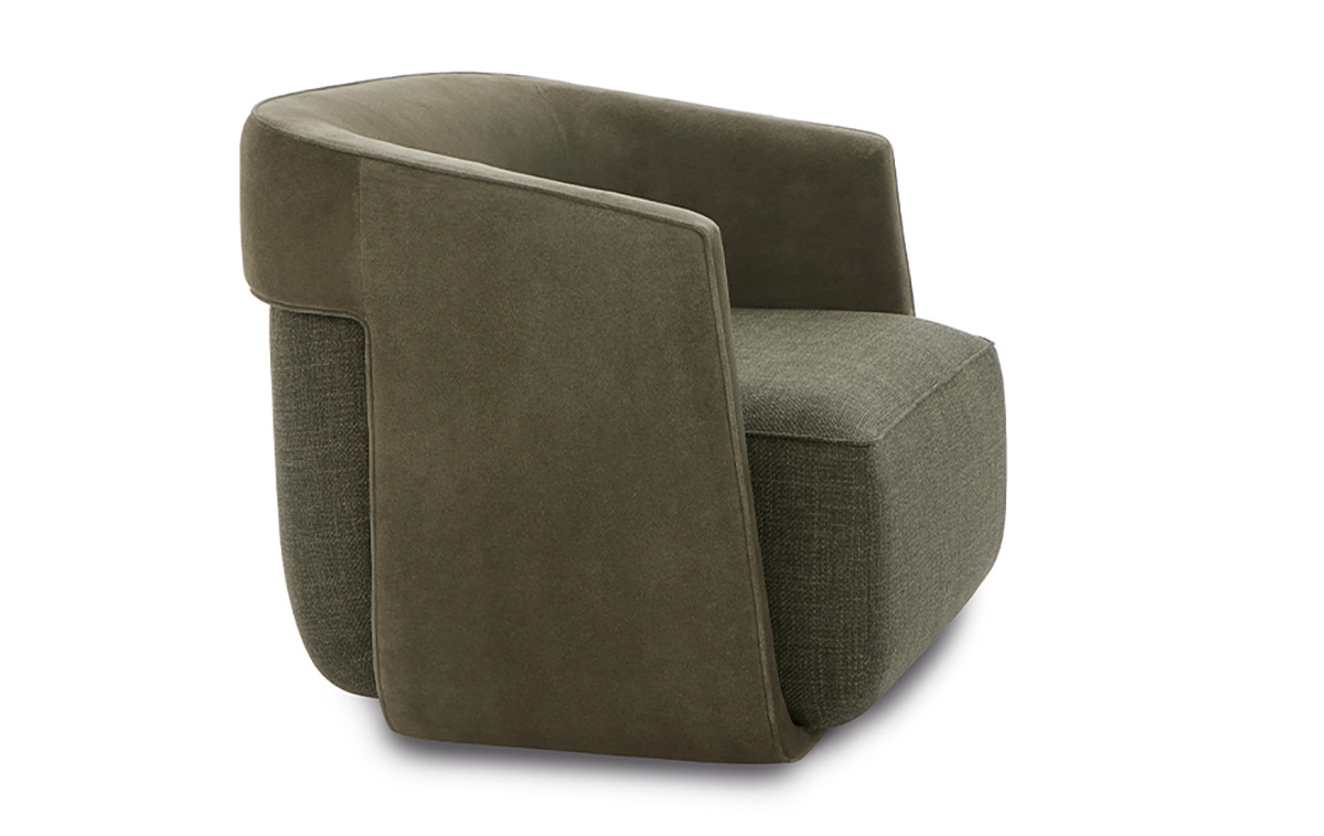 Com estrutura envolvente essa poltrona brinca com volumes generosos que podem ser revestidos em diversos acabamentos, curvas que desenham o conforto e estilo . Ideal para compor espaços amplos e versáteis, conta com uma base giratória discreta.