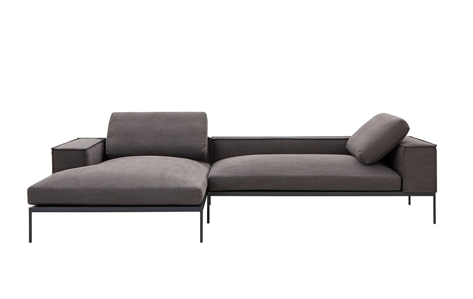 Todo o sofá é literalmente montado sob uma única estrutura metálica, braços, encostos e assentos são sustentados pela mesma, criando blocos e planos que convidam ao descanso e o prazer de viver a casa. O objetivo é fazer uma desconstrução, tradicional em alguns sofás, eao mesmo tempo, juntar novamente estas partes de forma independente, mas unidas com o objetivo de trazer conforto e originalidade. Eleva-se a estrutura, e assim surge uma caixa horizontal revestida de tecido, porém agradável aos olhos.