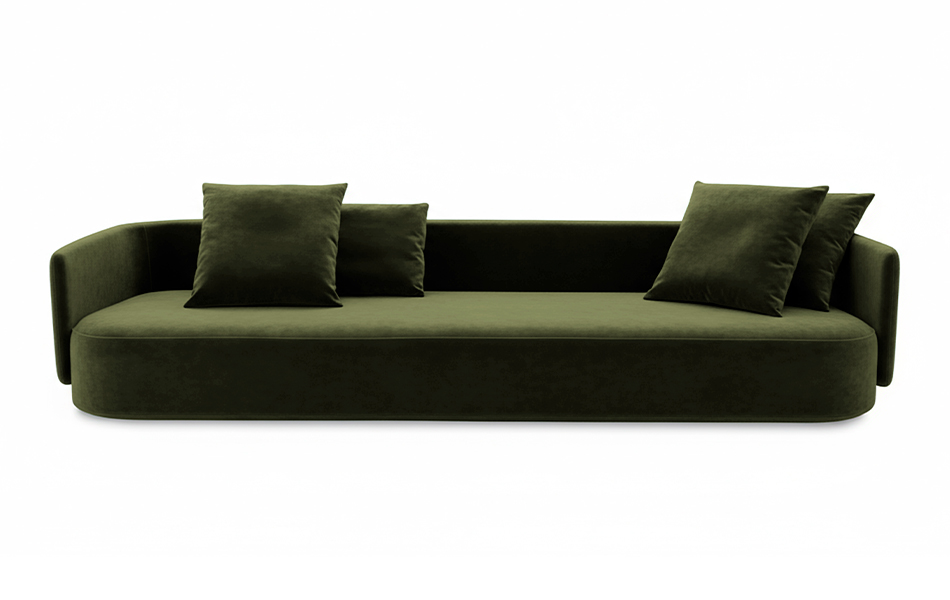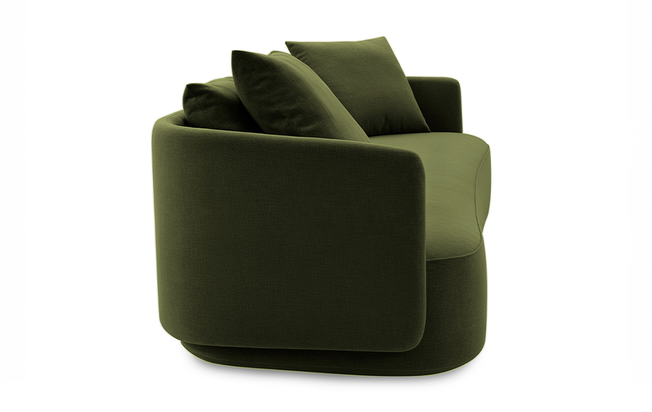 Para quem quer o charme do sofá curvo sem perder espaço. O desenho orgânico, com braços e encosto finos, garante leveza e aproveitamento interno. Com formas suaves e leveza visual, ele se encaixa bem em qualquer canto, especialmente onde cada centímetro conta.